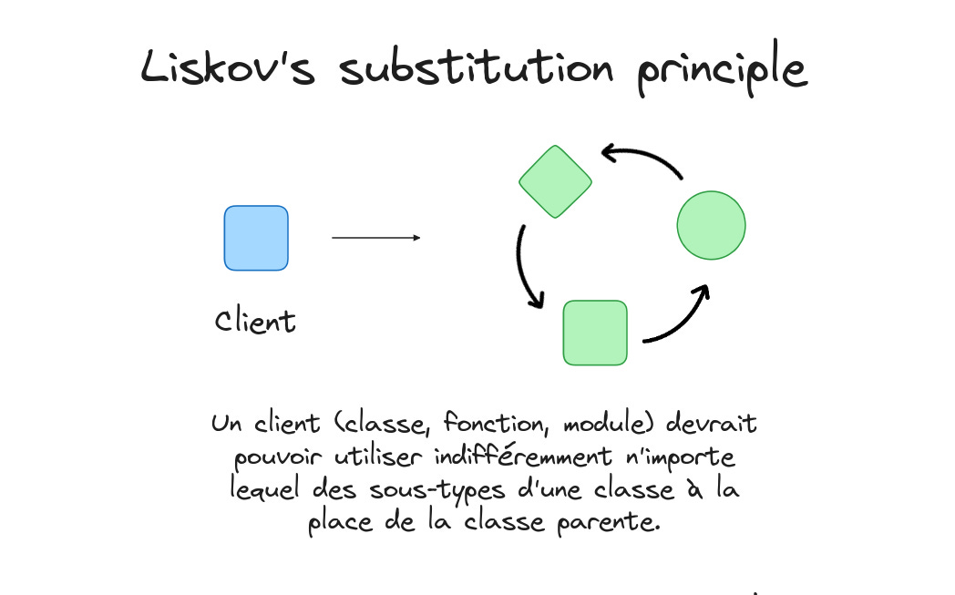 Une bonne classe doit définir une interface claire et concise, et tant que les sous-classes respectent cette interface, le programme restera correct. Ce principe est lié à l’idée de concevoir nos interfaces comme des contrats. Il y a un contrat entre un type donné et un client. En suivant les règles du LSP, la conception garantira que les sous-classes respectent les contrats tels qu'ils sont définis par les classes parentes.